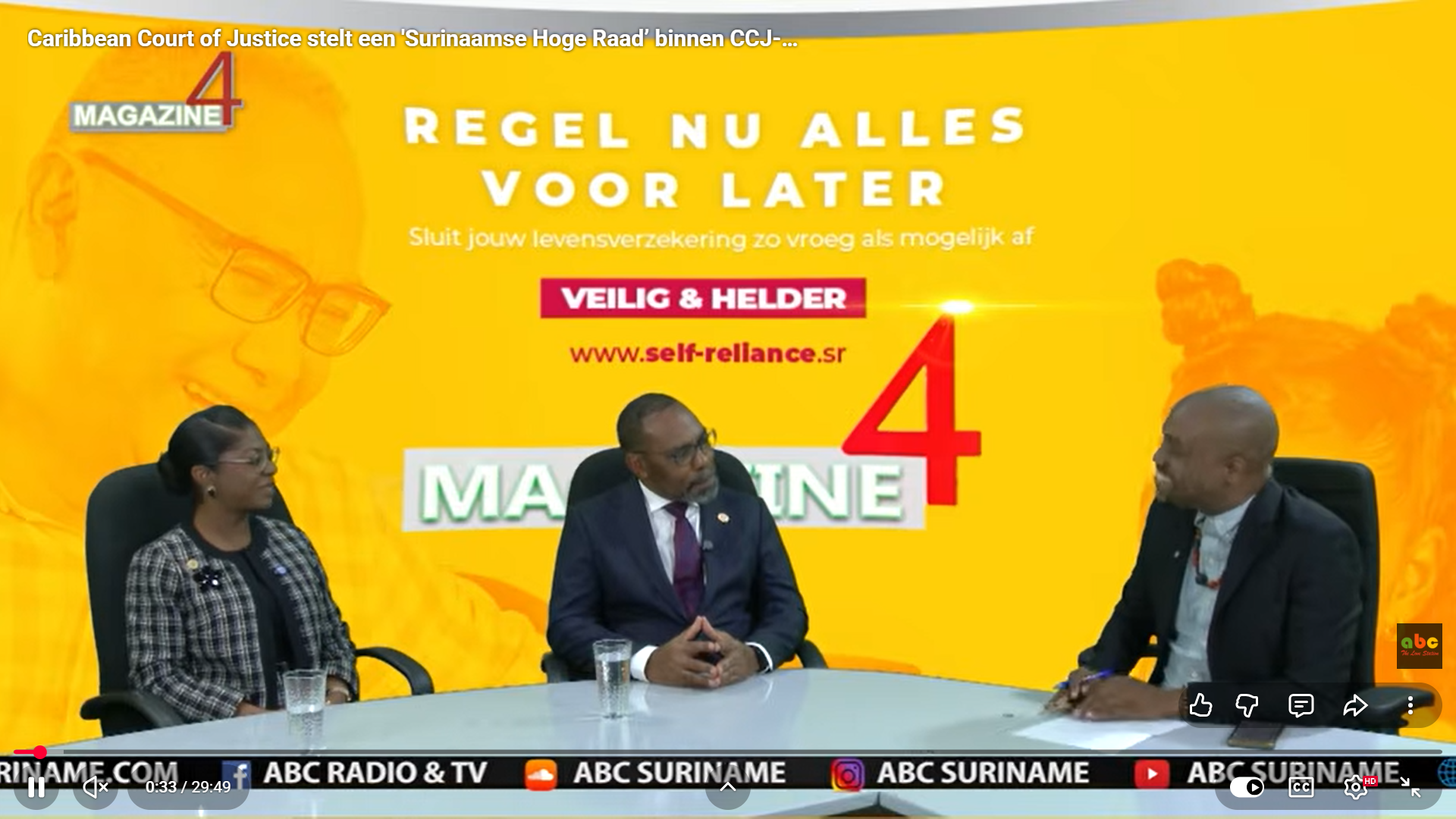 During a recent visit to #Suriname, on the invitation of President Rasoelbaks of the High Court of Justice of Suriname, the Hon Mr Justice Winston Anderson, #CCJ President and Mrs Gabrielle Figaro-Jones, Registrar and Chief Marshal, participated in an interview on ABC...