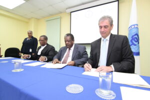 Signing of the Memorandum of Understanding by The Rt. Hon. Sir Dennis Byron, CCJ President, Jeffrey Apperson, National Centre for States Courts (NCSC) Vice President and the Hon. Mr Justice Ivor Archie, Trinidad and Tobago’s Chief Justice and Representative of the Caribbean Conference of Heads of Judiciary.